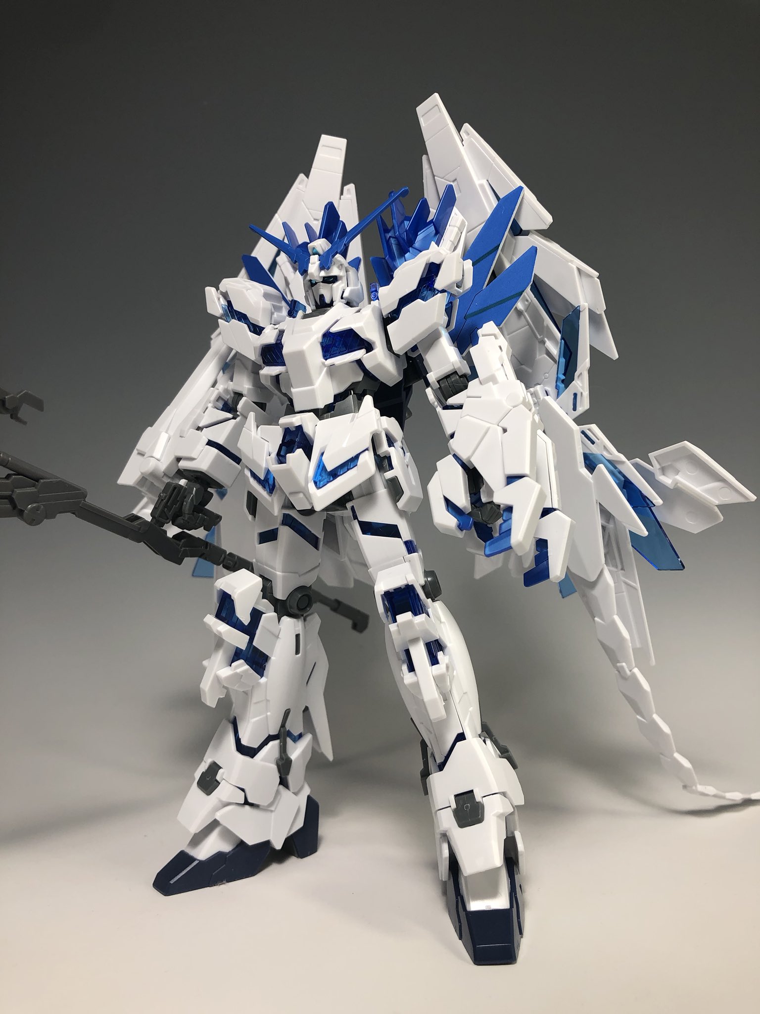 デンデロ Twitterren Hguc ユニコーンガンダム ペルフェクティビリティ デストロイモード 通常のフルアーマーユニコーン とはまた別の全部盛りで こちらはアームドアーマー全部載せ Ntフェネクスのスタビライザーを外せばプランbとしても楽しめます あと余剰パーツ